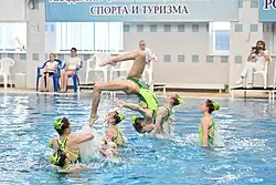 Синхронное плавание, также с 2017 года используется название артистическое[1][2] (или художественное[3]) плавание (англ. artistic swimming) — водный вид спорта, связанный с выполнением в воде различных фигур под музыку.