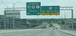 Кольцевые бизнес-трассы и ответвления обозначаются специальными щитами, на которых красный и синий цвета заменены зелёным, вместо слова «INTERSTATE» («межштатная магистраль») написано слово «BUSINESS» («бизнес») и над номером обычно есть надпись «SPUR» («ответвление») или «LOOP» («кольцо»)[54]. Зелёный щит применяется для обозначения главных маршрутов через центральный деловой район города, которые пересекают межштатное шоссе на одном конце (ответвление) или на обоих концах (кольцо) бизнес-трассы (англ. business route). Такие дороги, как правило, пересекают главные артерии деловой части города или главные бизнес-районы[55]. Город может иметь более одной бизнес-трассы, производной от межштатной магистрали, в зависимости от количества шоссе, проходящих через город и количества важных деловых районов[56].