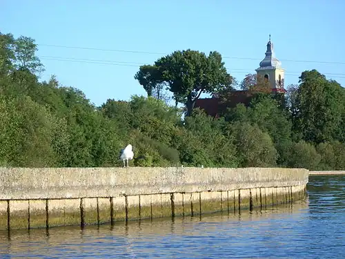 Что касается главного канала, то он продолжает направляться на восток и наконец завершается в Лихенском озере, которое лежит восточнее Понтнувского и соединено с ним протокой (под последней, кстати, проходит упомянутое только что ответвление для сброса тёплой воды в Микоржинское озеро). Точка соединения канала с Лихенским озером находится в 6,5 км от водозабора ТЭС Понтнув.