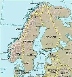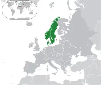Скандина́вия (лат. Scadinauia, дат. и швед. Skandinavien, норв. Skandinavia) — историко-культурный регион на севере Европы, охватывающий Скандинавский полуостров, полуостров Ютландия и прилегающие острова (Готланд, Зеландию и др.). Традиционно Скандинавия включает в себя три страны — Данию, Норвегию и Швецию[1]. В некоторых источниках Исландию, исторически тесно связанную с Норвегией и Данией, также рассматривают в составе Скандинавии[1]. Иногда Скандинавию рассматривают в более широком культурном и геополитическом смысле, включая в неё Исландию, Финляндию и острова Северной Атлантики[2]. Объединяя географические понятия Скандинавия и Финляндия, правильно употреблять термин Фенноскандия.