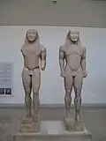 Ярким примером мужских изображений является скульптурная группа Клеобис и Битон, созданная на рубеже VII—VI веков Полимедом Аргосским. Хотя само по себе решение группы в виде двух почти одинаковых статуй показывает ещё ограниченность приемов архаики, созданный скульптором образ двух легендарных героев ярко выражает идеал дорического искусства Аттики. Тяжеловесные объёмы тел суровы, в них четко выявлены тектонические членения. К аттическим куросам относятся так же статуя с мыса Сунион ок. 600 года (Афины, Национальный музей) и статуя конца VII века (Нью-Йорк, Метрополитен-музей).