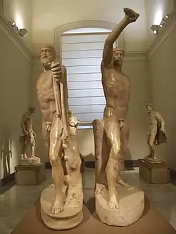 Задача взаимосвязи двух фигур, объединённых единым сюжетом, была поставлена скульпторами Критием и Несиотом, ок. 477 года до н. э. создавшими для Афин новое изображение тираноубийц Гармодия и Аристогитона (старая группа времён архаики была увезена разгромившими Акрополь персами). Фигуры героев полиса образуют цельную композицию благодаря общему движению.