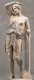 В IV в. до н. э. греческая скульптура, не утратив своего совершенства, приняла иной, чем прежде, характер: к великим идеям и возвышенным чувствам, породившим столько замечательных произведений в век Перикла, присоединились новые понятия и стремления; создания пластики стали более страстными, проникнутыми драматизмом, в них проявилась более чувственная красота. Изменился также материал скульптуры: слоновая кость и золото были вытеснены мрамором; меньше стали использоваться металлические и иные украшения.[6]