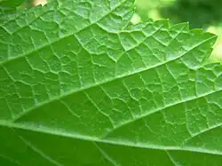Лист крупным планом. Хорошо заметных жёлтые желёзки.