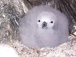 Один из пуховых нарядов птенца снежного буревестника имеет голубовато-серую окраску