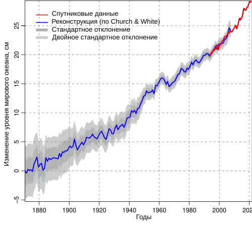 - ↑ Vermeer, Martin/Rahmstorf, Stefan. Global sea level linked to global temperature // Proceesings of the National Academy of Science. — 2009. Архивировано 18 октября 2011 года.