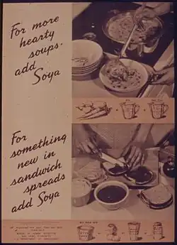 В связи с этим соя часто используется как недорогой и полезный заменитель мяса и молочных продуктов, причём не только людьми с небольшим достатком, но и людьми, по различным причинам отказавшимися от мяса, например, вегетарианцами. Также соя входит в состав кормов молодняка сельскохозяйственных животных. Соевый шрот широко задействован в мясо-молочной промышленности и входит в состав многих изделий из мяса[27][28]