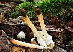 | Мутинус собачий | Mutinus caninus (Huds.) Fr., 1849 | Нераскрытые плодовые тела округлые, иногда яйцевидные, редко удлиненные, 2—3 см диаметром, белые, с крупными мицелиальными тяжами. С ростом гриба под давлением рецептакула перидий разрывается на вершине на две-три лопасти, которые сохраняются у основания плодового тела. Впервые обнаружен в 1980 г. южнее Томска. |