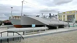 ТК-31 Верхняя Пышма Торпедный катер типа «Г-5» 2019 Полноразмерный макет, сделанный для Музея военной техники УГМК. Оригинальный катер ТК-31 успешно действовал на Чёрном море во время Великой Отечественной войны[10].