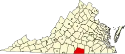 | Питсилвейния | 1767 | Чатем | 61 687 (2016) | 2533 / 2510 | 24,6 | Самый большой округ Виргинии по площади суши. В округе находится крупнейшее в США (7-е в мире) неразработанное месторождение урана. | |