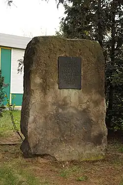 Памятный камень в честь Петра Дернова, заслонившего своим телом амбразуру немецкого бункера пол. Głaz ku czci Piotra Diernowa, który poległ zasłaniając strzelnicę niemieckiego bunkra |