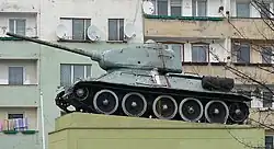 1976[6] | В 1990-х годах был перекрашен в розовый цвет, позднее танку вернули оригинальный тёмно-зелёный окрас. В 2017 году был взят на баланс городского археологического музея и таким образом выведен из-под действия закона о сносе советских памятников[7]. |