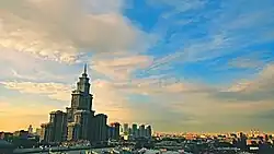 | 19 | Главное здание МГУ | ![]() | Москва | 240 (по шпилю) | 183,2 | 36 | 1953 | Ленинские горы, Главное здание МГУ | |