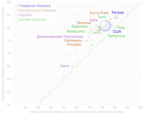 | Америка[7] | 77,2 | 74,5 | 79,8 | 5,3 | 3,1 | 66,2 | 64,8 | 67,5 | 2,7 | 2,1 | 22,7 | 21,2 | 24,0 | 2,8 | 1,6 | 16,6 | 15,7 | 17,4 | 1,7 | 0,9 | |