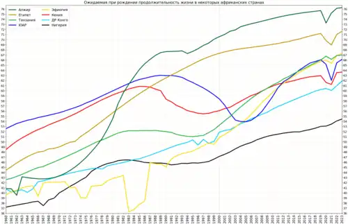 - ↑ Life expectancy at birth, female (англ.). Группа Всемирного банка (15 апреля 2025). Дата обращения: 28 апреля 2025. Архивировано 12 марта 2021 года.