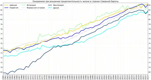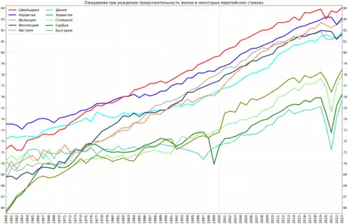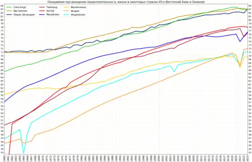 - ↑ OECD Data: Life expectancy at birth (англ.). Организация экономического сотрудничества и развития (17 декабря 2023). Дата обращения: 18 декабря 2023. Архивировано 2 февраля 2015 года.