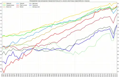 - ↑ Life expectancy and Healthy life expectancy, data by country (англ.). Всемирная организация здравоохранения (2020). Дата обращения: 28 февраля 2021. Архивировано 5 марта 2013 года.