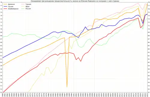 - ↑ Life expectancy at birth, male (англ.). Группа Всемирного банка (15 апреля 2025). Дата обращения: 28 апреля 2025. Архивировано 11 марта 2021 года.