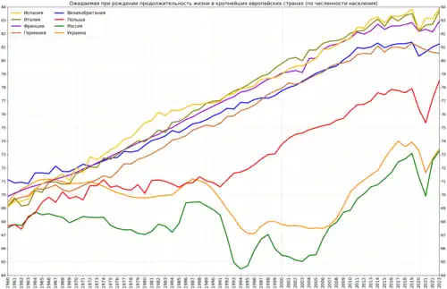 - ↑ В России увеличилась продолжительность жизни. ura.news. Дата обращения: 1 апреля 2022. Архивировано 5 июля 2022 года.