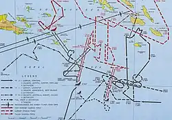 25. Tully, «IJN Shokaku»; Gill, pp. 40-41; Dull, pp. 124—125; Millot, pp. 31 & 150; Lundstrom (2006), p. 138 & 145; D’Albas, p. 94; Gillison, p. 526; Willmott (1983), pp. 210—211. The Carrier Strike Force was originally tasked with conducting surprise air raids on Allied air bases at Coen, Cooktown, and Townsville, Australia but the raids were later cancelled by Inoue as Takagi’s carriers approached the Solomons (Lundstrom).