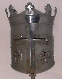 - Топфхельм — часто в виде ведра
