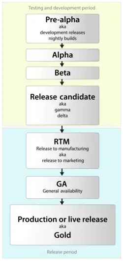 Обозначение готовности программного продукта к тиражированию[1]. Это стабильная версия программы, прошедшая все предыдущие стадии, в которых исправлены основные ошибки. RTM предшествует общей доступности (GA), когда продукт выпущен для общественности.