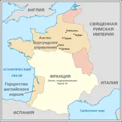 Продолжая военные действия, в 1428 году англичане осадили Орлеан. Атака французов на английский обоз с продовольствием у деревни Руврэ под Орлеаном вылилась в сражение, получившее в истории название «Битва селёдок» и закончившееся победой англичан под руководством рыцаря Джона Фастольфа. 1428 год ознаменовал собой появление на политической арене Жанны д’Арк.