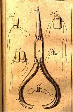 Стоматологические плоскогубцы, разработанные Пьером Фошаром в конце XVII века для протезирования.