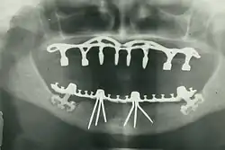 Панорамная рентгенограмма исторических дентальных имплантатов, сделанная в 1978 г.