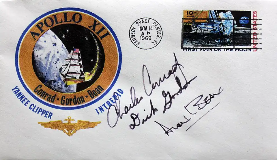 Возможность страхования жизни астронавтов на значительные суммы была ограничена из-за высоких рисков полёта на Луну, поэтому перед вылётом они подписывали сотни почтовых конвертов, понимая, что их ценность стала бы очень высокой в случае гибели астронавтов.