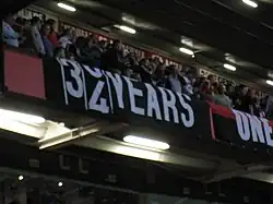 - The Phoenix Banner — MUFC — EST 1878 WE’LL NEVER DIE (впервые размещён во время матча с «Блэкберн Роверс»)