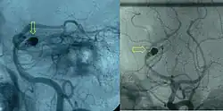 - ↑ Piotin M., Spelle L., Mounayer C., et al. Intracranial aneurysms: Treatment with bare platinum coils—aneurysm packing, complex coils, and angiographic recurrence (англ.) // Radiology : journal. — 2007. — Vol. 243, no. 2. — P. 500—508. — doi:10.1148/radiol.2431060006. — PMID 17293572. Архивировано 7 октября 2008 года.