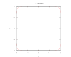 При n = 2 кривая превращается в эллипс (в частности, при a = b — в окружность). При n > 2, кривая выглядит как прямоугольник со скруглёнными углами. В точках (±a, 0) and (0, ±b) кривизна кривой равна нулю.