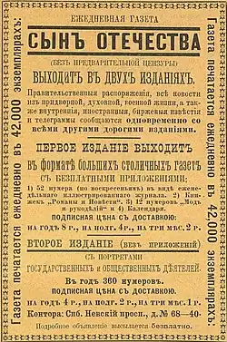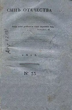 - ↑ Сын Отечества // Энциклопедический словарь — СПб.: Брокгауз — Ефрон, 1901. — Т. XXXII. — С. 208.