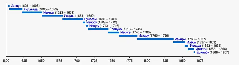 | • 1603 — 1616 | Токугава Иэясу (первый) | ||||