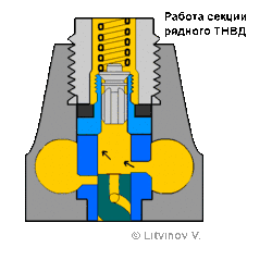 В топливном насосе непосредственного действия осуществляется механический привод плунжера и процессы нагнетания и впрыска протекают одновременно. В каждый цилиндр секция топливного насоса подает необходимую порцию топлива. Требуемое давление распыления создается движением плунжера насоса.