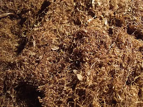 Таба́к — высушенные, измельчённые и ферментированные листья и стебли некоторых видов одноимённого рода растений, употребляемые для курения, вдыхания (порошкообразная консистенция) или жевания[1][2]. Культивируются 2 вида рода Табак — табак культурный и махорка[3]. Употребление табака в различных видах и различными способами (курение, жевание, нюхание) вызывает субъективное чувство притока сил, успокоения, в дальнейшем приводит к зависимости. Одним из основных действующих веществ является алкалоид никотин (воздействие на организм связано с взаимодействием с Н-холинорецепторами содержащих их холинергических нервных синапсов и как следствие возбуждением некоторых отделов парасимпатической нервной системы). Многие из сопутствующих курению летучих дёгтеобразных веществ являются канцерогенными[4][5].