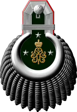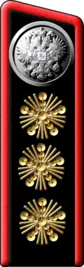 Тайный советник. Знаком различия служат галунные петлицы без просветов с тремя звёздами и эмблемой служебного ведомства