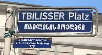 Дорожный указатель, напоминающий о дружбе городов (Саарбрюккен, Германия)