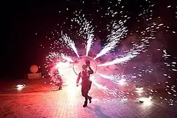 - Встреча гостей (у входа на какое-нибудь мероприятие вас встречают люди с огнём) или go-go с огнём (клубный вариант).