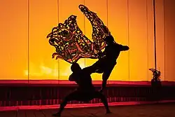 Театр теней использует большой полупрозрачный экран и плоские марионетки, управляемые на тонких палочках. Марионетки прислоняются к экрану сзади и становятся видны.