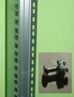 Отверстия в стойке для крепления оборудования могут быть без специальных приспособлений (в таком случае требуются болты с гайками), могут иметь собственную резьбу, либо быть в виде перфорации квадратной формы для установки на защёлках специальных квадратных гаек с резьбой М6 (последний тип стоек получил наибольшее распространение). В большинстве моделей также предусмотрено крепление заднего края оборудования и монтаж внутри стойки выдвижных конструкций на базе горизонтальных рельс для особо тяжёлого/глубокого оборудования.