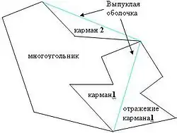 - Любой -угольник без самопересечений может быть преобразован в слабо выпуклый не более чем поворотом карманов относительно ребер выпуклой оболочки.