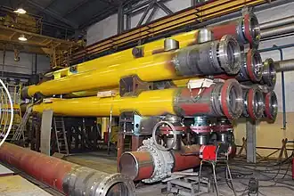 - Элементные теплообменники. Каждый элемент такого аппарата представляет собой простейший кожухотрубный теплообменник без перегородок. Такие аппараты допускают при этом более высокое давление. Однако такая конструкция получается более громоздкой и тяжёлой, чем кожухотрубный аппарат.