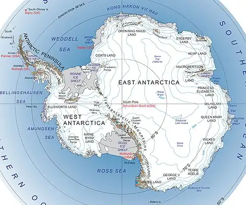 - ↑ U.S. Antarctic Program External Panel. Antarctica: past and present. Национальный научный фонд (1997). Дата обращения: 19 августа 2014. Архивировано 17 февраля 2006 года. (англ.)