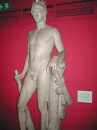 ![]() Тесей, убивающий Минотавра, и Афина. Краснофигурный килик, мастер Эсон, 425—410 годы до н. э. Национальный археологический музей, Мадрид | |