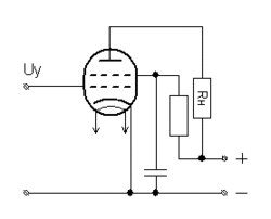 - анодное напряжение понижается до 5…7 В, при этом втекающие и вытекающие составляющие сеточных токов примерно равны и взаимно компенсируют друг друга.