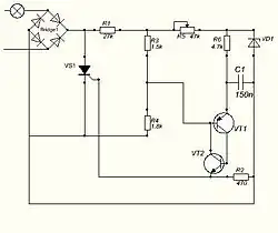 - Регулятор яркости светильника (схема на тиристоре)