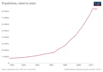Валовой внутренний продукт составляет 4,767 млрд долл. (2017). По ВВП Того занимает 155-е место в мире[12]. Валовой внутренний продукт (по паритету покупательной способности) на душу населения — 1660 долл. (2017). По ВВП (ППС) на душу населения Того занимает 180-е место в мире[13].