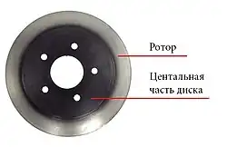 Ротор крепится на центральную часть диска, которая, в свою очередь, крепится на ступицу колеса. Центральная часть ротора препятствует передаче тепла от тормозящей поверхности до колёсных подшипников, благодаря чему подшипники не нагреваются.